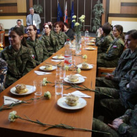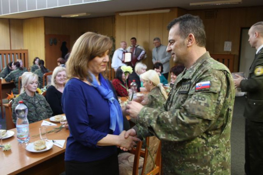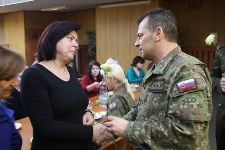 K žene patria kvety a v tento deň obzvlášť. Prítomným dámam plukovník Parimucha podaroval kvet, ktorý nepochybne symbolizoval vďaku za ich každodennú prácu a do ďalšieho pracovného i súkromného života im želal len to najlepšie nakoľko slová „cítiť, milovať, trpieť a obetovať sa“ budú vždy obsahom života ženy.