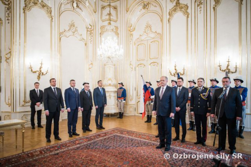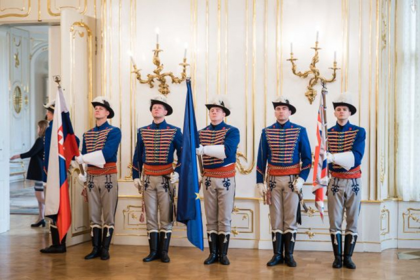 Slávnostný ceremoniál v priestoroch Grasalkovičovho paláca zabezpečili príslušníci Čestnej stráže prezidenta SR pod velením rotmajstra Mareka Mihálika.