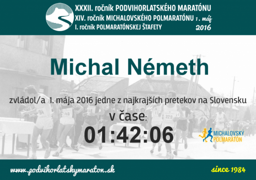Michalovský polmaratón, bežci považujú za jeden z najkrajších bežeckých pretekov na Slovensku. V cieli sa stopky zastavili na 1:42:06 . V celkovom hodnotení dobehol veliteľ 2. palebnej batérie na 26. mieste z celkovo 141 zúčastnených bežcov. Vo svojej vekovej kategórii skončil na výbornom deviatom mieste, čím si o jedno miesto polepšil oproti minulému ročníku.