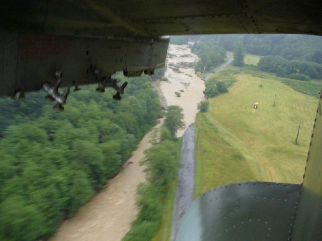 Veliteľ základne plukovník Miroslav Korba dňa 24. 7. 2008 v skorých ranných hodinách, približne o 05:24 hod., vykonal prvý let na vrtuľníku Mi – 24, ktorého účelom bol prieskum počasia a celková kontrola situácie v postihnutých regiónoch. Osádku ďalej tvoril mjr. Karol Zeman, palubný technik rtn. Róbert Lacko a záchranár práp. Milan Kocík.