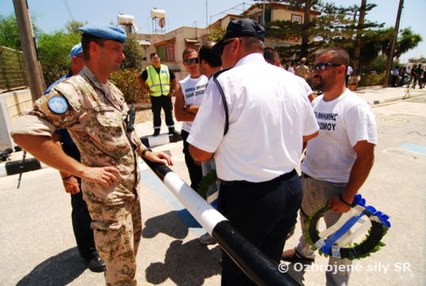 Takmer 40 slovenských vojakov bolo počas soboty a nedele nasadených na kontrolu integrity nárazníkovej zóny pri obci Dherynia. Práve tam sa uskutočnili výročné demonštrácie Gréckych Cypriotov, ktorí si pripomenuli udalosti z pred roku 1974, ktoré vyústili k ozbrojenému konfliktu a rozdeleniu ostrova. Zároveň si pripomenuli aj stratu dvoch Gréckych Cypriotov, ktorí v auguste 1996 prišli o život - Solomos Solomou bol zastrelený tureckými silami pri pokuse vyliezť na stožiar pri pozícii tureckých síl a odstrániť tureckú vlajku ako protest na zabitie jeho bratranca Tassos Isaaca, ktorý prišiel o život o niekoľko dní skôr počas demonštrácie voči prítomnosti tureckých síl na Cypre.