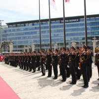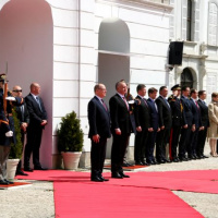 Oficiálna návšteva monackého panovníka na Slovensku začala slávnostným privítacím ceremoniálom na prednom nádvorí Grasalkovičovho paláca. Plné pocty zabezpečili na vysokej profesionálnej úrovni príslušníci Čestnej stráže prezidenta SR pod velením veliteľa Čestnej stráže prezidenta SR plukovníka Miroslava Ištvána.