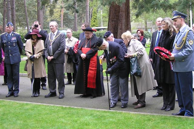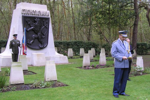 V československej časti cintorína pri hroboch 45 českých a slovenských letcov a pri pamätníku, ktorý tu stojí na ich počesť, privítal prítomných vojnový veterán a predseda združenia Zväzu letcov slobodného Československa plk. v. v. Arnošt Polák. S príhovormi vystúpili aj náčelník Generálneho štábu Armády Českej republiky generál Vlastimil Picek, pražský arcibiskup kardinál Dominik Duka a pridelenec obrany SR plukovník Vladimír Samek.