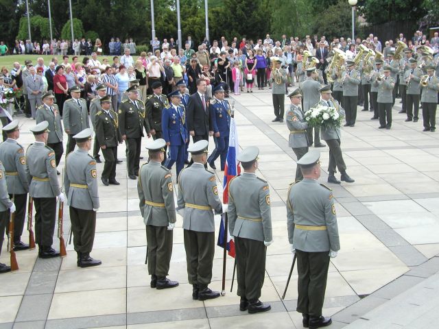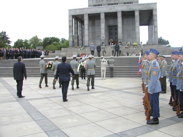 Monumentálny pamätník Slavín je miestom, kam sa prišli v tento deň pokloniť a vzdať hold padlým vojakom predseda vlády SR Róbert Fico, zástupcovia diplomatických zborov v Slovenskej republike, poslanci NR SR, náčelník Generálneho štábu Ozbrojených síl SR generálporučík Peter Vojtek, predseda Bratislavského samosprávneho kraja Pavol Frešo , primátor mesta Bratislava Milan Ftáčnik a všetci tí, ktorí si prišli pripomenúť významný historický medzník.
