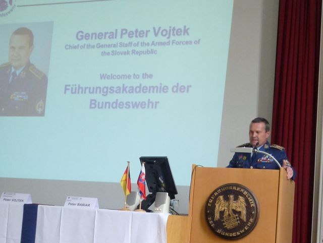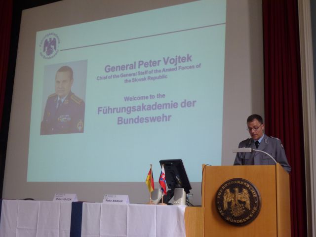 Dnes 13. júna v ranných hodinách náčelníka GŠ OS SR generálporučíka Petra Vojteka privítal veliteľ Veliteľskej akadémie (Führungsakademie der Bundeswehr – FüAkBw) v Hamburgu generálmajor Achimo Lidsba. Na spoločnom rokovaní veliteľ akadémie Lidsba informoval generálporučíka Vojteka o poslaní, štruktúre a úlohách akadémie. Ako ďalej veliteľ uviedol, zámerom velenia akadémie je vytvoriť globálnu sieť akadémií vrátane slovenskej Akadémie ozbrojených síl generála M. R. Štefánia v Liptovskom Mikuláši, s cieľom nastaviť spoločné výcvikové a výukové programy. Na tomto programe Akadémia ozbrojených síl v Liptovskom Mikuláši intenzívne pracuje a ako prvý krok plánuje recipročnú výmenu slovenských a nemeckých vojenských študentov. Uvedenú myšlienku generálporučík Vojtek podporil.