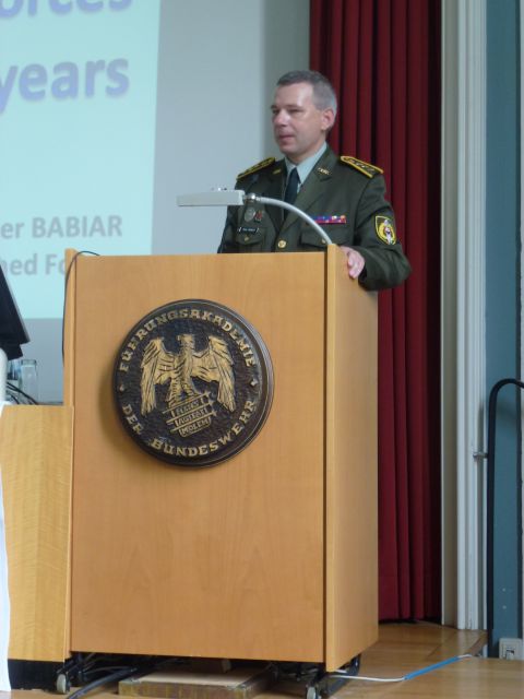 „Som veľmi potešený, že sa môžem osobne po druhý krát zúčastniť slávnostného ceremoniálu pri príležitosti ukončenia medzinárodného kurzu generálneho štábu, teraz však nie už ako študent, ale ako pozvaný hosť. Príprava a vzdelávanie štábnych dôstojníkov na plnenie vojenských úloh v národnom a medzinárodnom prostredí je významným prínosom a základom budúcnosti všetkých ozbrojených síl. Účasť zahraničných študentov v kurze je nesporným faktorom, ktorý prispieva k rozvoju spolupráce vo vojenskej oblasti na medzinárodnej úrovni a vytvára nové väzby pre budúce spoločné operácie. Vaše teoretické a praktické znalosti, nadobudnuté počas tohto kurzu, prispejú k naplneniu poslania Vašich ozbrojených síl nielen na národnej úrovni, ale aj v medzinárodnom prostredí, v rámci spoločných operácií, v duchu interoperability a spoločných spôsobilostí.“