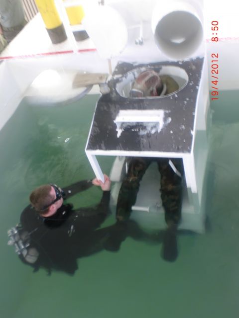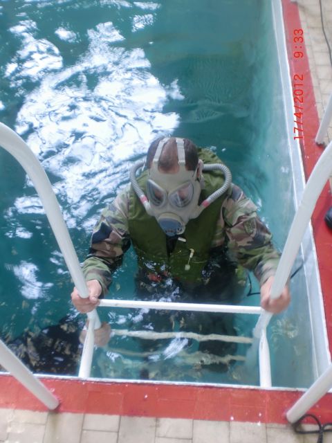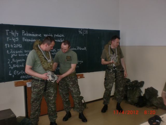 V súlade s plánom prípravy na výcvikový rok 2012 sa v priestoroch „Metodického cvičiska brodenia tankov“ v Martine v dňoch 17. – 19. apríla 2012 uskutočnil výcvik príslušníkov tankovej roty 21. zmiešaného mechanizovaného práporu Trebišov v prekonávaní vodných prekážok. Zamestnanie riadil veliteľ tankovej roty – kpt. Ing. Jozef HORVÁTH a zúčastnilo sa ho 38 cvičiacich profesionálnych vojakov.Cieľom zamestnania bolo absolvovať cvičenia spomínanej tematiky, no predovšetkým psychicky pripraviť osádky tankov tak, aby aj prakticky zvládli dostať sa z bojového priestoru tanku pri jeho zaplnení vodou v čase prekonávania vodných prekážok. K tomuto účelu cvičiaci používajú záchranný prístroj označený ZP-10, ktorý je použiteľný len s ochrannou maskou M-10 M.Pred samotným cvičením im bola objasnená problematika jednotlivých úkonov i nevyhnutné bezpečnostné opatrenia na ktoré dohliadali hlavne v čase nácvikov pod vodnou hladinou dvaja potápači. Každý zo zúčastnených sa pred týmto cvičením musel podrobiť lekárskej prehliadke. Samotná tematika bola rozdelená do dvoch základných celkov a to tak, že 17. apríla a časť z 18. apríla 2012 bola plnená „T4/4 Prekonávanie vodných prekážok“ s nácvikom zotrvania pod vodnou hladinou so spomínaným záchranným prístrojom ZP-10 až do 2,8 m hĺbky k tomuto účelu vybudovanom bazéne. Druhá časť zamestnania, teda až do 19. apríla bola určená k plneniu „T4/5 Prekonávanie vodných prekážok“ s cieľom vykonať nácvik zatopenia tanku s využitím makety vodičského priestoru, ktorý sa postupne spolu s cvičiacim spustil do spomínanej hĺbky 2,8 m. Okrem samotného zotrvania po určitú dobu v tak zatopenom tanku, mal cvičiaci za úlohu vyslobodiť sa z bojového priestoru a za pomoci samo nafukovacejzáchrannej vesty sa dostať nad vodnú hladinu. Medzi najlepších patrili: rtn. Dávid KÓMA, des. Ján SUKOVSKÝ, slob. Zdenek MALEJČÍK, slob. Ján EPERJEŠI, slob. Martin ZIMNÝ. Ciele zamestnania boli splnené výborným spôsobom.