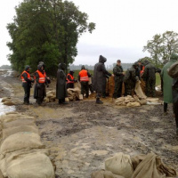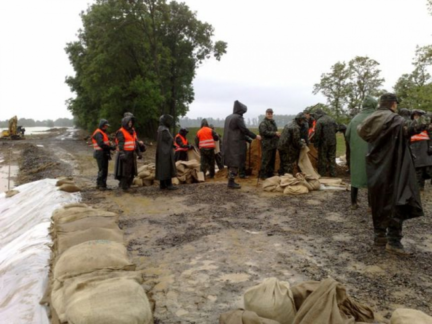 Ďalej o 17,00 hod bolo nasadených 20 PrV s 1 nákladným terénnym vozidlom z 13 mpr. Levice do priestoru obce Malé Kozmálovce k spevňovaniu hrádze vrecovaním na rieke Hron.
