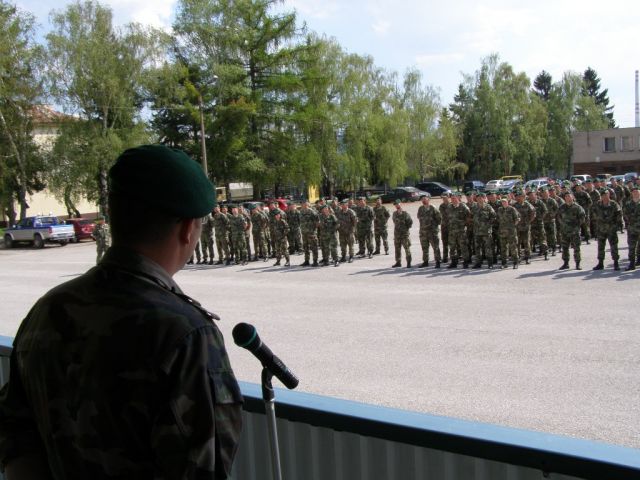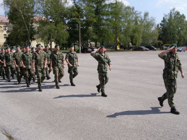 Nástup bol ukončený slávnostným pochodom práporu po ktorom sa prítomní rozišli za plnením ďaľších pracovných povinností výcvikového dňa .