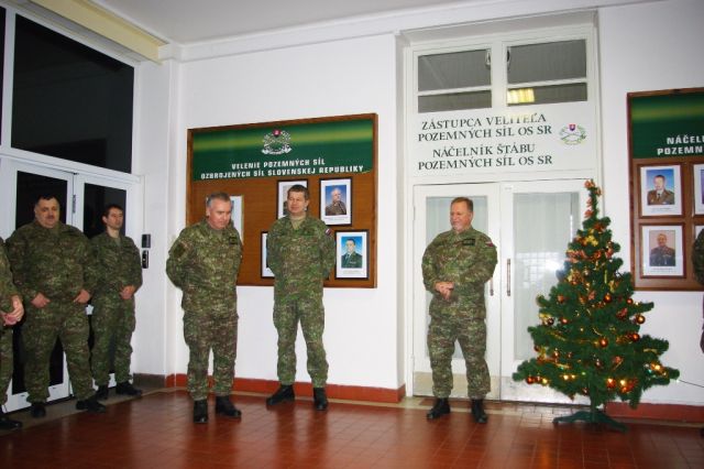 Záver predvianočného dňa patril spoločnému stretnutiu veliteľa a príslušníkov Veliteľstva pozemných síl OS SR pri vianočnej jedličke, kde po veliteľovi pozemných síl svoje duchovné slovo predniesli dekani veliteľstva podplukovník Juraj Sitáš a nadporučík Ondrej Rišiaň.