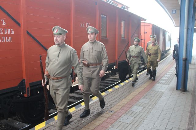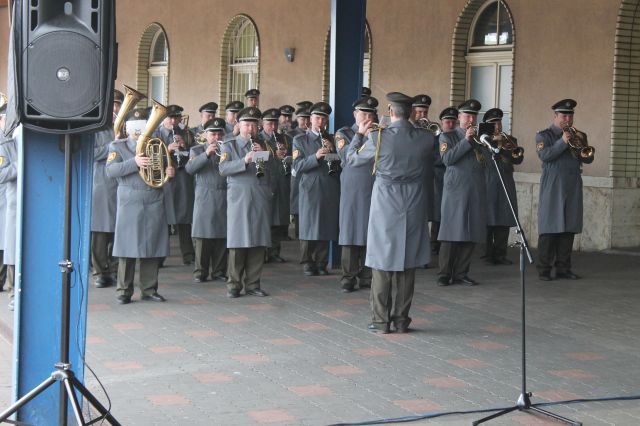 Príchod legiovlaku na nástupište číslo jeden umocnili odohraním pochodových piesní príslušníci Vojenskej hudby OS SR pod dirigentskou taktovkou majora Borisa Hokinu.
