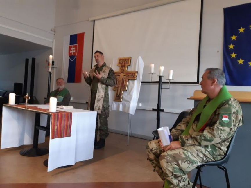 Prvýkrát po dlhej pauze mali naši vojaci možnosť zúčastniť sa Bohoslužby v slovenskom jazyku, ktorú im ponúkol a celebroval generálny duchovný Ústredia ekumenickej a pastoračnej služby v ozbrojených silách a v ozbrojených zboroch SR plukovník Viktor Sabo.