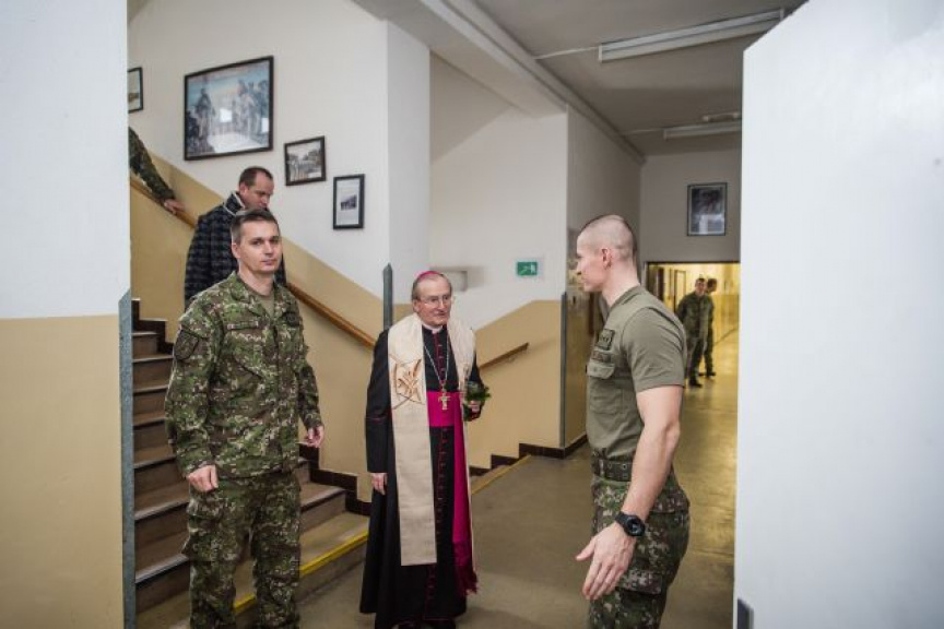 Vojenského biskupa spolu so sprievodom privítal na pôde útvaru veliteľ čestnej stráže plukovník Branislav Vavrinec spolu so svojim zástupcom podplukovníkom Jánom Krajčovičom.