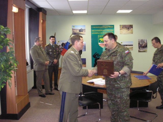 Po úvodnej prezentácii základných informácii o 2.mb si delegácia prehliadla pastoračnú miestnosť a sieň tradícií 2.mb. Vedúci poľskej delegácie brigádny generál Krzystof DOMŽALSKÝ sa vo svojom vystúpení na záver stretnutia poďakoval veliteľovi 2.mb za prijatie a vyjadril obdiv a úctu nad tým, aké množstvo náročných úloh 2.mb plní v zahraničných operáciách ale aj v mierovom živote.