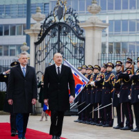 Prezident Azerbajdžanskej republiky Ilham Alijev pricestoval na Slovensko 8. decembra 2025 na oficiálnu návštevu. Jeho prvou zastávkou bol Prezidentský palác v Bratislave, kde ho privítal prezident Slovenskej republiky Peter Pellegrini. Slávnostný ceremoniál sa uskutočnil s úplnými vojenskými poctami, na ktorých participovala aj Vojenská hudba Ozbrojených síl SR. Po oficiálnom privítaní pokračoval program položením venca k Bráne slobody na Devíne. Aj tento pietny akt sprevádzal orchester vojenskej hudby, ktorý dodal udalosti dôstojnú a symbolickú atmosféru.