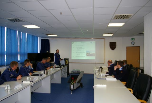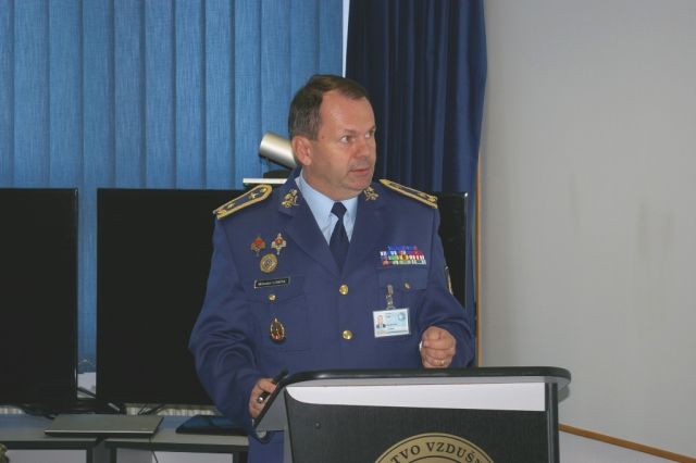Na úvod veliteľ taktického krídla Sliač plukovník gšt. Vladimír Lisý priblížil delegácií formou multimediálnej prezentácie úlohy, ciele a činnosť taktického krídla Sliač.