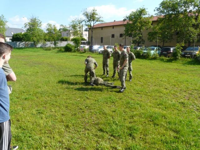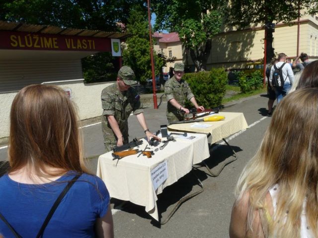 Študentom boli predvedené ukážky ručných zbraní, výstroje vojaka, ukážky radiačnej, chemickej a biologickej ochrany. Vojaci predviedli aj spojovacie prostriedky a prvky sebaobrany - boj zblízka. Všetky ukážky boli spojené s výkladom a praktickým predvedením. Študenti aj učitelia prejavovali živý záujem a kládli vojakom množstvo otázok.