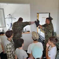 Študenti sa oboznámili s ručnými zbraňami, implementovanými v OS SR – Samopal vz. 58 P a pištoľ vz. 82. Obhliadli si materiál na osobné použitie profesionálnych vojakov. Prebehli cez prekážkovú dráhu, oboznámili sa s radiačnou, chemickou a biologickou ochranou a absolvovali ukážku sebaobrany. Prehliadku zakončili základmi maskovania a ukážkou obrnenej pozemnej techniky Tank T-72, BVP-2 a VPV.