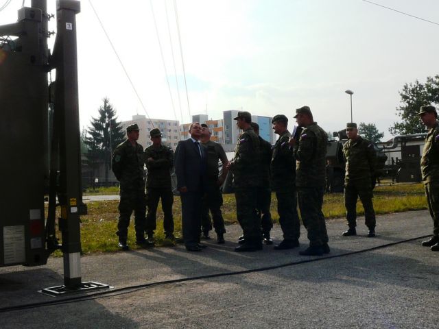 Po krátkom uvítaní a predstavení hlavných funkcionárov Základne mobilných KIS veliteľ Základne mobilných KIS pplk. Ing. Štefan POBIJAK a náčelník 1.c kpt. Ing. Miroslav MIŠKOVIČ predstavili a odprezentovali jednotlivé súčasti, ktorými disponuje mobilný komunikačný systém MOKYS.
