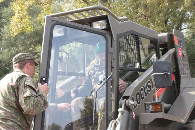 Veliteľ ženijného práporu podplukovník Dalibor Jelínek oboznámil vzácnu návštevu s prebiehajúcim spoločným výcvikom pontónových jednotiek Slovenskej a Českej republiky, ktoré prebiehalo celý týždeň na cvičisku Kráľová nad Váhom. Priamo na cvičisku okrem pontonierskej techniky zaujali generálmajora aj zemné ženijné stroje, dokonca natoľko, že si ovládanie Locustu vyskúšal osobne.