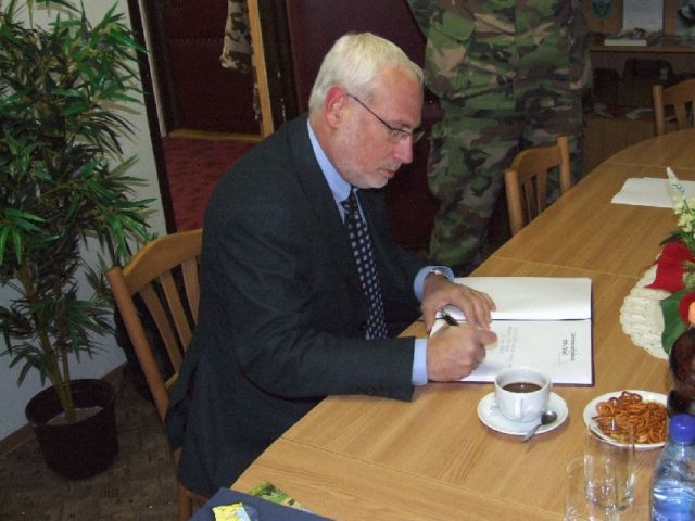 Počas návštevy bol pán veľvyslanec prijatý a sprevádzaný zástupcom veliteľa mjr. Ing. Jelínkom. Obsahom návštevy bola krátka prezentácia útvaru ako aj ukážka techniky a materiálu ženijného práporu. Pán veľvyslanec sa živo zaujímal aj o históriu kasárni, ktoré počas II. Svetovej vojny slúžili ako pracovný a koncentračný tábor. Na záver návštevy si prezrel aj priestory bývalého koncentračného tábora.
