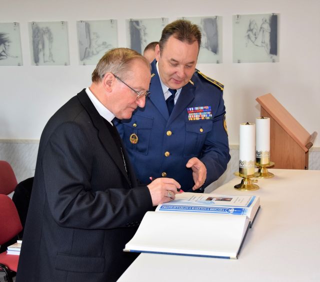 Návšteva ordinára OS a OZ SR bola ukončená slávnostným obedom v priestoroch útvarovej jedálne, kde bola možnosť sa stretnúť aj v neformálnych rozhovoroch s pánom biskupom Rábekom a utužiť tak pracovné vzťahy na úrovni ľud skej i kolegiálnej.