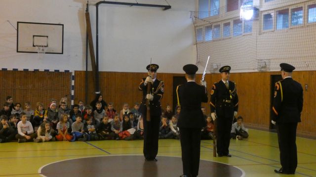 Dňa 6. decembra sme navštívili základnú školu na Medzilaboreckej ulici v bratislavskom Ružinove. Príslušníci Čestnej stráže prezidenta SR sa deťom predviedli so svojim programom. V rámci ukážok sa deti zábavnou formou oboznámili s úlohami, ktoré ČS PSR plní. Predviedli sme im výstroj a výzbroj, ktorú používame pri reprezentácii a výcviku. Deti si vyskúšali pochodovanie pod velením čatára Mariána Simana a desiatnika Mateja Nácestu. Rotný Jozef Aľušík s desiatnikom Marekom Rybárikom predviedli ukážku sebeobrany a pre veľký záujem si deti s nimi vyskúšali hmaty a chvaty. Starším žiakom ZŠ sme predstavili hlavné úlohy, ktoré plní Čestná stráž prezidenta SR, objasnili sme im špecifické podmienky prijatia k nášmu útvaru. Deti sa zaujímali o výcvik, ktorý musí zvládnuť každý príslušník útvaru. Na záver nás deti odmenili búrlivým potleskom.