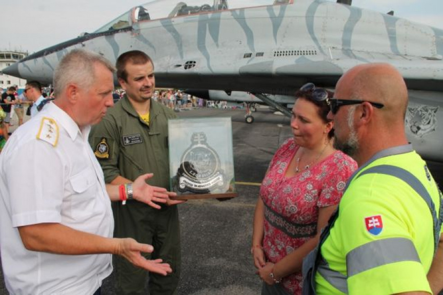 Príslušníkov 1. taktickej letky počas prvého dňa tohtoročných medzinárodných leteckých dní na Sliači čakalo príjemné prekvapenie. Anna Budová, ktorá nepochybne patrí medzi fanúšikov slovenského vojenského letectva a samotnej letky im odovzdala znak 1. taktickej letky, ktorý zhotovila vlastnoručne tradičnou slovenskou drotárskou metódou.