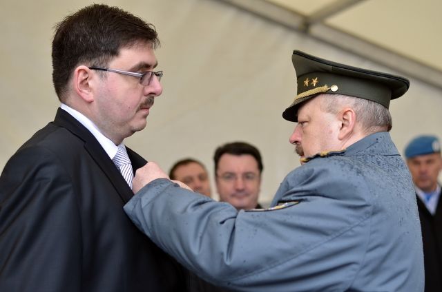 Jubilejných osláv pri príležitosti sedemdesiatich rokov od ukončenia krutej vojny, ktorá za sebou zanechala milióny mŕtvych i ranených, rozvaliny miest a obcí – more utrpenia a žiaľu, si prišli na námestia v Topoľčanoch a Partizánskom uctiť, okrem niekoľko desiatok ľudí pamätajúcich si na ťažké chvíle počas vojnových rokov, aj druhý zástupca náčelníka Generálneho štábu OS SR generálmajor Pavol Macko, veliteľ Pozemných síl Ozbrojených síl Slovenskej republiky brigádny generál Ondřej Novosad, funkcionári veliteľstva 1. mechanizovanej brigády na čele s plukovníkom gšt. Jánom Bujňákom, a ďalší hostia.