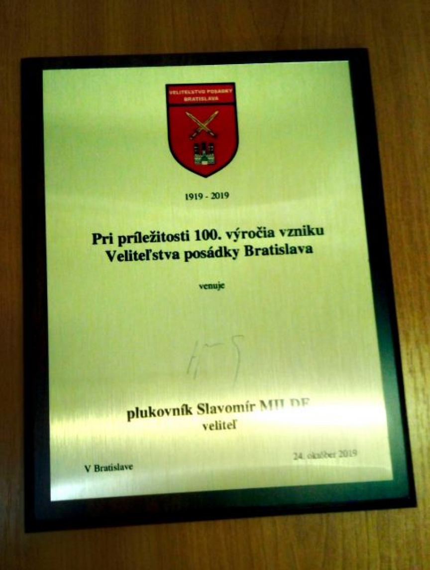 Dňa 5. novembra vykonal veliteľ Veliteľstva posádky Bratislava plk. Slavomír Milde v sprievode zástupcu veliteľa VePBA pplk. Romana Grnáča, náčelníka štábu VePBA pplk. Miloslava Arnolda, a veliaceho poddôstojníka VePBA šbnrtm. Daniela Činčára návštevu na Dulovom námestí v Bratislave za účelom ocenenia príslušníkov Vojenskej hudby OS SR pri príležitosti 100. výročia založenia Veliteľstva posádky Bratislava. Ako poďakovanie, plk. Milde odovzdal vybraným príslušníkom vojenskej hudby pamätné mince, vydané pri tejto príležitosti. Na pripomenutie tohto významného jubilea, veliteľ VePBA plk. Milde odovzdal Vojenskej hudbe OS SR pamätnú plaketu, ktorú prevzal jej veliteľ npor. Jozef Hepner.