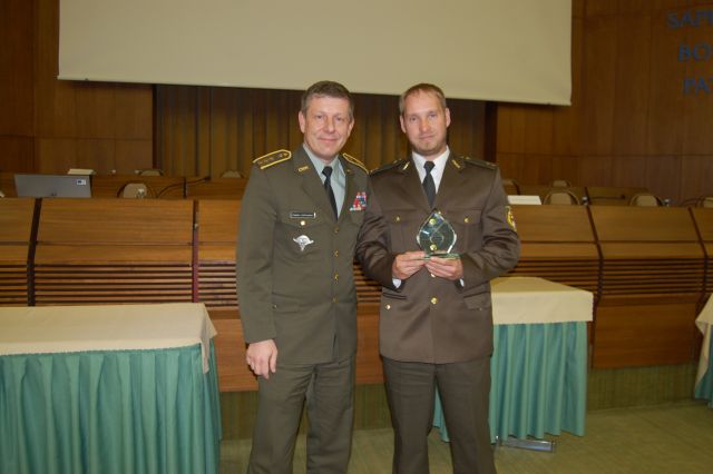 Na základe hlasovanie účastníkov konferencie odovzdal v rámci záverečného slova hlavný lekár OS SR plukovník MUDr. Vladimír LENGVARSKÝ, MPH cenu za najlepšiu prednášku konferencie nadporučíkovi MUDr. Tomášovi VIRECOVI za príspevok o pôsobení príslušníkov chirurgického tímu ROLE 2E v operácií RS Afganistan.