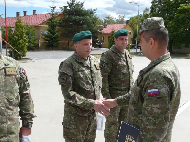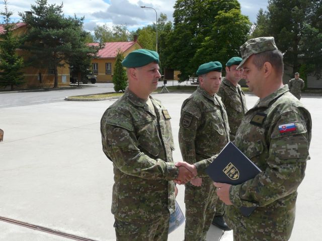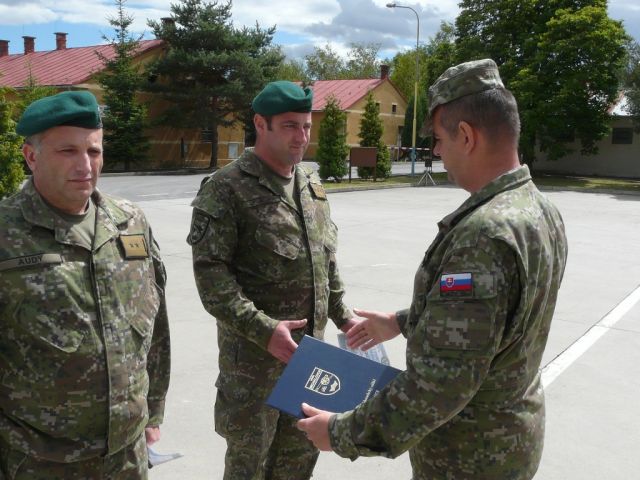 Zástupca veliteľa odovzdal pamätné listy pri príležitosti ukončenia činnej vojenskej služby rotmajstrovi Petrovi Olejníkovi a rotnému Petrovi Audymu a kapitánovi Lapinovi ktorý bude v OS SR slúžiť ďalej.