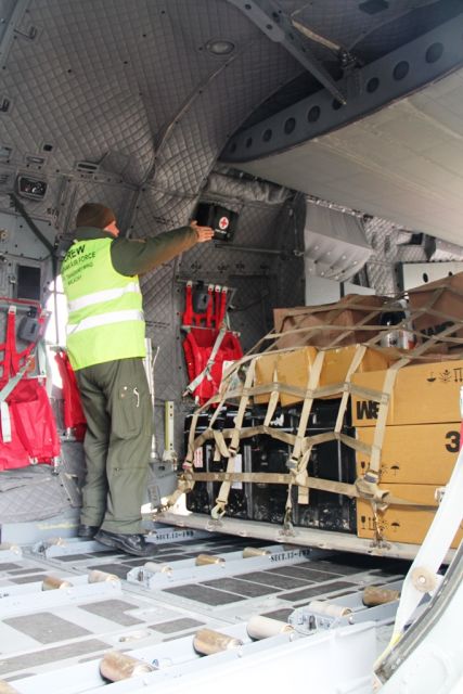 Prepravu materiálu a batožiny na trase Sliač-Riga pre 76 príslušníkov OS SR zabezpečili leteckou technikou C-27J Spartan príslušníci dopravného krídla z Malaciek a manipuláciu a naloženie materiálu do leteckej techniky realizovali príslušníci Taktického krídla Sliač.