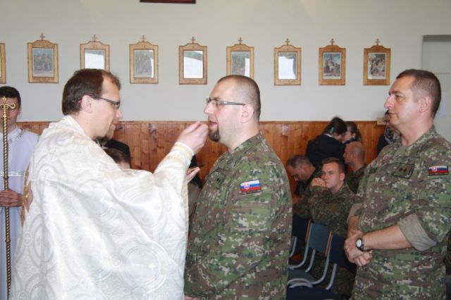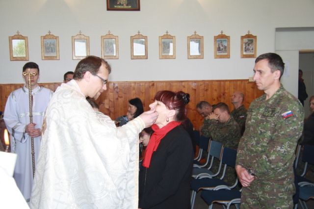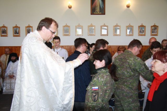 Po skončení slávnostnej liturgie a požehnaní ešte nasledovalo tradičné mirovanie, ktoré sprevádza každú gréckokatolícku odpustovú slávnosť. Na záver vladykovi Milanovi Chauturovi za pozvanie, odslúženú liturgiu i požehnanie poďakoval nadporučík Slavomír Krajňák, ktorý mu v mene všetkých veriacich odovzdal malý dar na pamiatku návštevy trebišovských kasární.