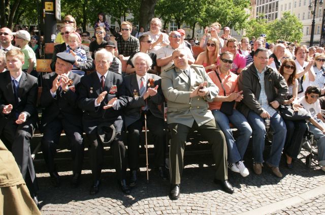 Medzi divákmi boli aj zástupcovia náčelníka Generálneho štábu Ozbrojených síl SR generálmajor Miroslav Kocian a generálporučík Jaroslav Vývlek, slovenskí antifašisti, ako aj traja ruskí generáli, priami účastníci oslobodzovania Československa.