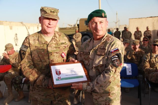 Odovzdaním medailí NATO „Non article .5„ za účasť v operáciách pod velením NATO operačnými veliteľmi našich jednotiek ich oficiálnym spôsobom odovzdali pod národné velenie OS SR. Vo svojom príhovore generál major Bills, veliteľ regionálneho veliteľstva juh, poďakoval za prácu našich vojakov a veliteľov. Vyzdvihol spoľahlivosť, poctivosť a aktívny prístup k plneniu úloh našich vojakov. Vyjadril nesmiernu spokojnosť so splnenými úlohami a všetkým poprial šťastný návrat domov.