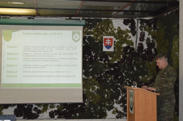 Teoretická časť veliteľského zhromaždenia bola zameraná na prednášky k aktuálnym otázkam v oblasti psychológie – Interpersonálne vzťahy ako významný ukazovateľ velenia a riadenia ľudí a v oblasti postavenia a úloh poddôstojníckeho zboru. Veliteľ oppr podplukovník Vladimír Kotrus vo svojom vyhodnotení hlavných úloh a priorít plnených oppr v roku 2017 podrobne analyzoval jednotlivé oblasti, zdôraznil klady a nedostatky, ktoré sa počas uplynulého roku pri plnení úloh vyskytli.