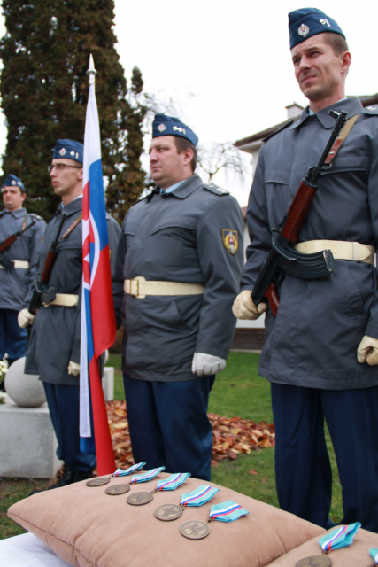 Súčasťou spomienkového ceremoniálu bolo aj morálne ocenenie vojnových veteránov a ďalších osobností, udelením Pamätnej medaile Únie vojnových veteránov SR za podporu a rozvoj tradícií hnutia vojnových veteránov. Organizátormi podujatia boli Únia vojnových veteránov SR spolu s miestnou Základnou organizáciou SZPB, mestami Zvolen a Sliač, klubom Zväzu vojakov vo Zvolene, Strediskom kultúrne - osvetových činností posádky Zvolen a s podporou Veliteľstva Vzdušných síl OS SR a Taktického krídla generálmajora Otta Smika Sliač.