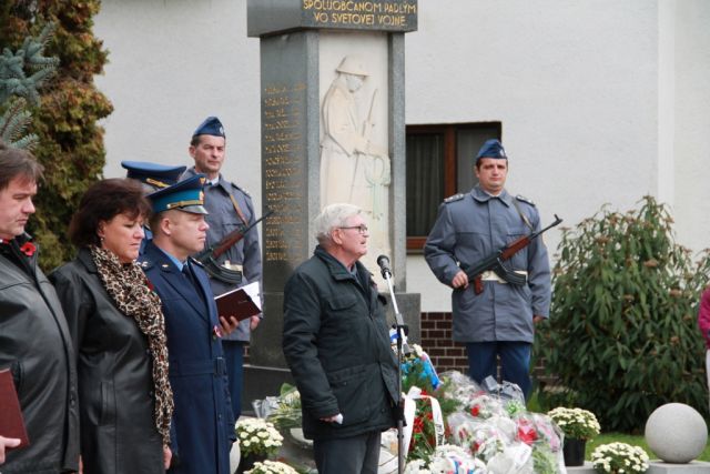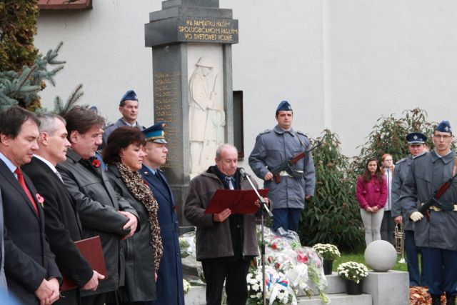 Rozozvučanie kostolných zvonov 11. novembra o 11. hodine a 11. minúte zahájilo pietne spomienkové stretnutie pri Pamätníku obetiam prvej svetovej vojny v meste Sliač. Kvety červených makov, ako symbol vojnových veteránov, zdobili hrude účastníkov, ktorí si prišli uctiť obete všetkých vojen a vyjadriť tak súčasne svoju túžbu po mieri. Okrem vzácnych hostí a členov Únie vojnových veteránov, Slovenského zväzu protifašistických bojovníkov, Jednoty dôchodcov Slovenska, Zväzu vojakov, príslušníkov Ozbrojených síl a miestnych občanov, nechýbali ani deti z miestnej Základnej školy a Materskej školy.
