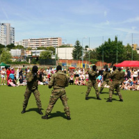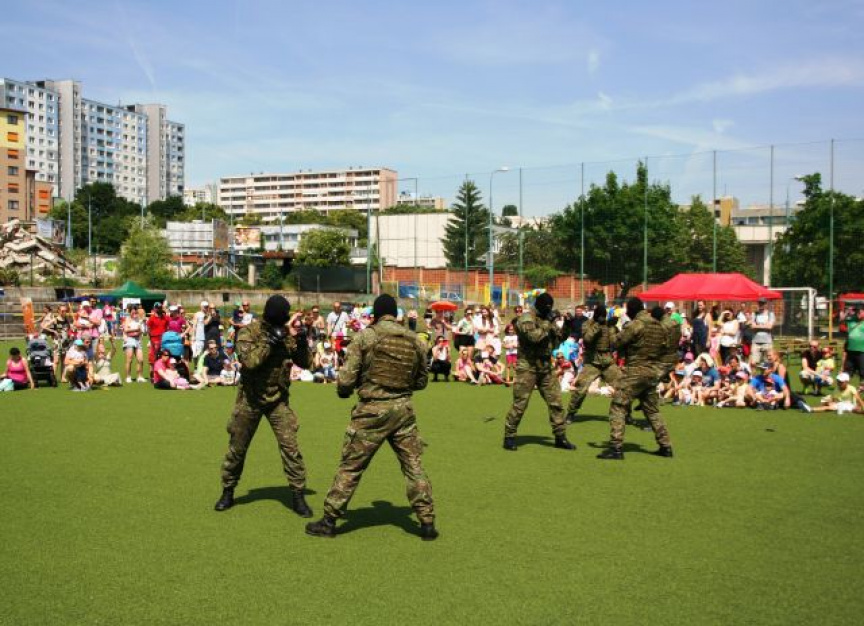 Úsmev na tvárach detí vyčarila i dynamická ukážka sebaobrany pod vedením rotmajstra Jozefa Aľušíka a ukážka netradičných cvikov so zbraňou pod vedením rotmajstra Atillu Mestera. Prítomnosť vojakov deti veľmi potešila, čoho dôkazom bol veľký potlesk a obrovský záujem o spoločné fotenie.