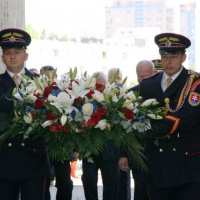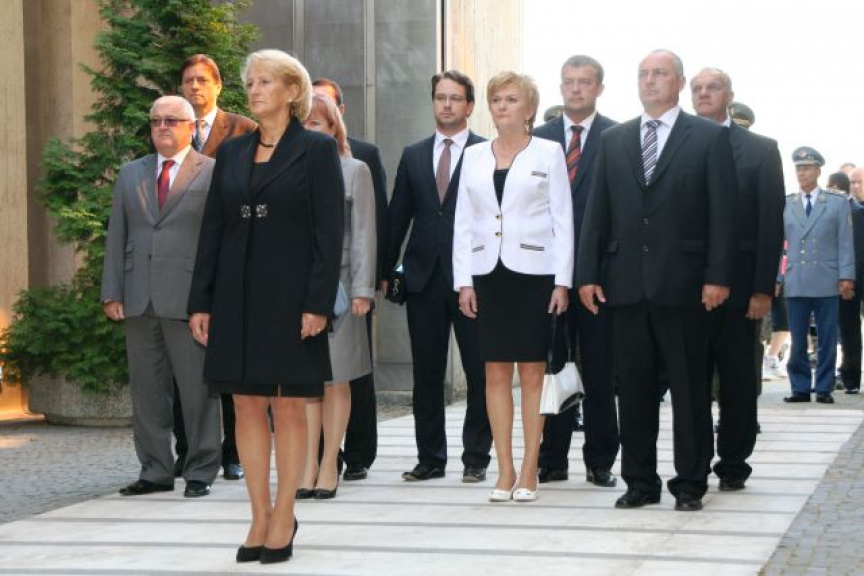 Spomienkový ceremoniál na významné obdobie slovenského národa začal preletom stíhačiek Ozbrojených síl Slovenskej republiky nad dejiskom osláv. Po ňom si politická a vojenská elita na čele s prezidentom Slovenskej republiky Ivanom Gašparovičom uctila položením vencov k Jankovičovmu súsošiu „Obete varujú“ pamiatku na obete povstania.