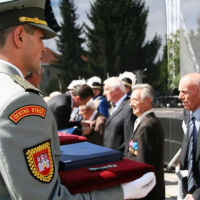 Slávnostné zhromaždenie pokračovalo vyznamenaním priamych účastníkov odboja a odhalením pamätného kameňa v pietnej sieni Pamätníka SNP, ktorým si pripomíname účasť Slovincov v SNP.
