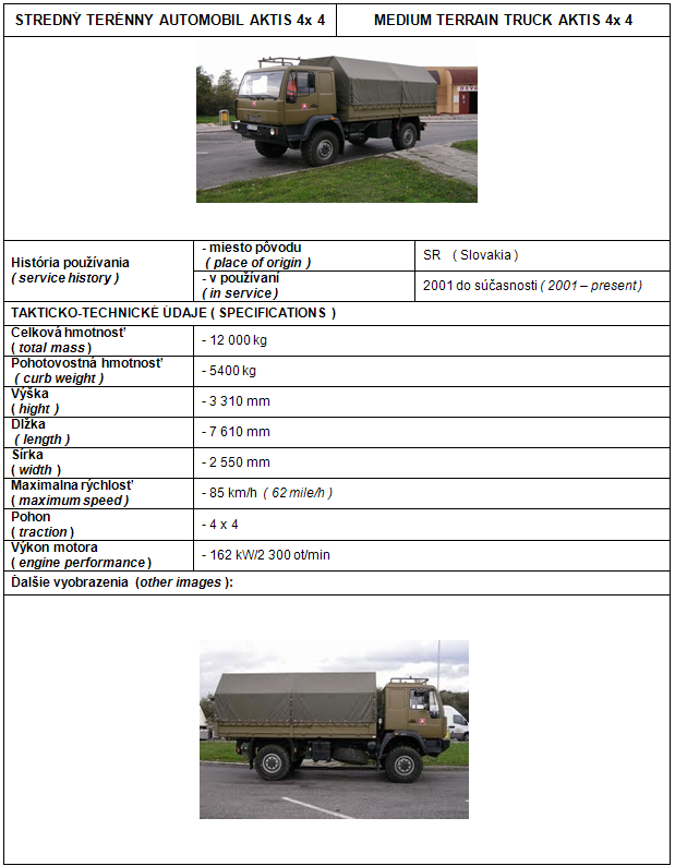 Stredný terénny automobil AKTIS 4x4 (Medium terrain truck AKTIS 4x4) |