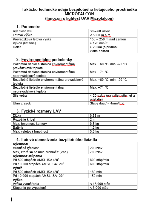 Bezpilotný lietajúci prostriedok MICROFALCON (Innocon´s lightest UAV Microfalcon) |