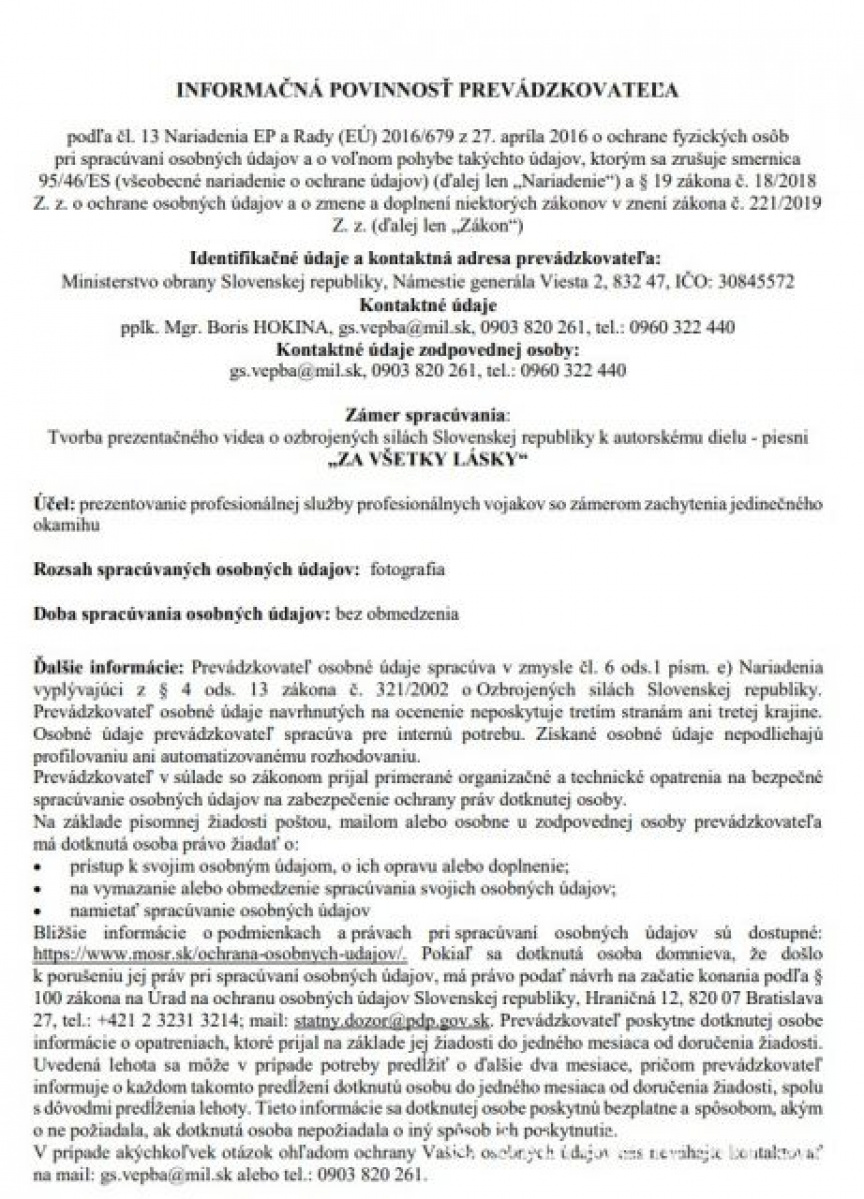 Oznam v súvislosti s výrobou videoprojekcie k hudobnému dielu