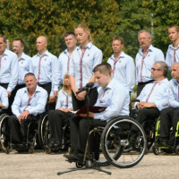 Po sľube nasledovala štátna hymna a príhovor nášho najvyššieho predstaviteľa. „Som veľmi rád, že aj keď musíte prekonať istý hendikep, o to silnejší je váš duch, vôľa a všetko to, čo za roky prípravy dokážete pretaviť do víťazstva, „ zdôraznil Ivan Gašparovič a odovzdal vedúcemu výpravy Samuelovi Roškovi slovenskú vlajku, pod ktorou budú slovenskí paralympionici bojovať na letnej paralympiáde, ktorá začne v britskej metropole už 29. augusta a potrvá do 9. septembra 2012.