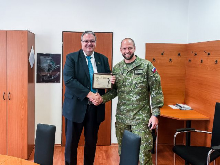 Cieľom návštevy pluku však nebolo iba predstavenie spôsobilostí žilinských špeciálov, ale najmä špeciálnych síl ako takých. Obe delegácie si počas návštevy uctili pamiatku kapitána in memoriam Eda Makovníka a rotmajstra in memoriam Paťa Fraštiu spoločným položením vencov pri Pamätníku vojakom SŠO.