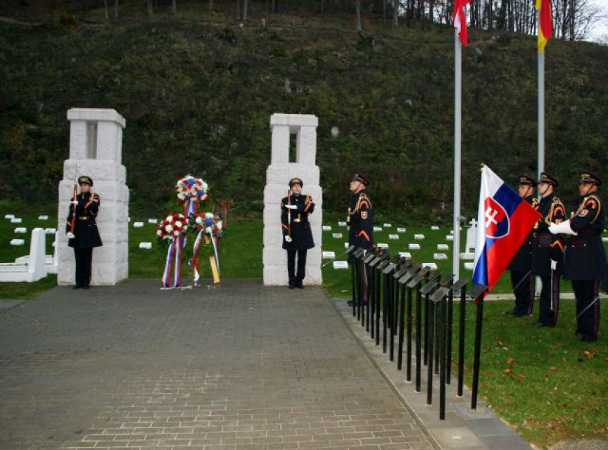 K zabezpečeniu dôstojnej spomienky na padlých hrdinov 1. svetovej vojny na cintoríne v Trenčíne – Kubre prispeli položením venca v mene prezidenta SR príslušníci Čestnej stráže prezidenta SR.