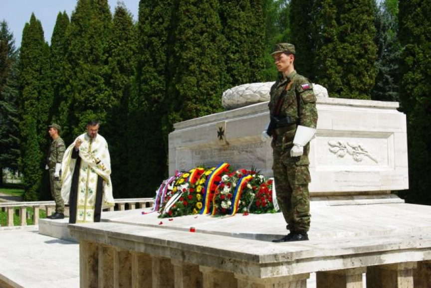 Pietny akt kladenia vencov pri Pamätníku Rumunskej armády na vojenskom cintoríne vo Zvolene