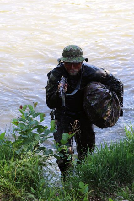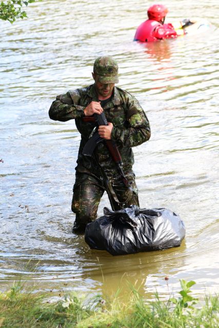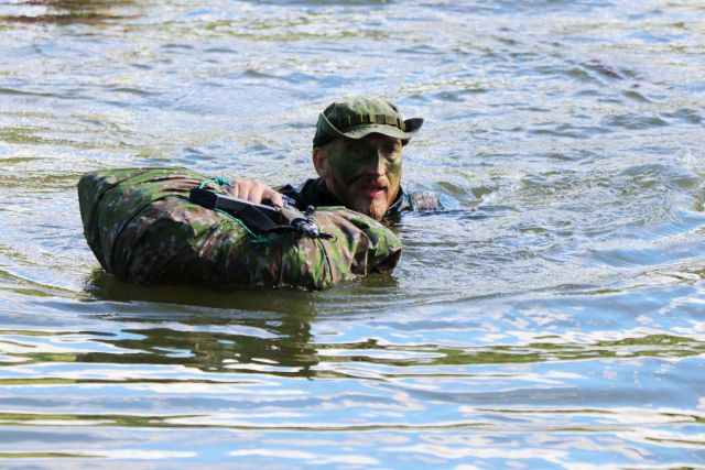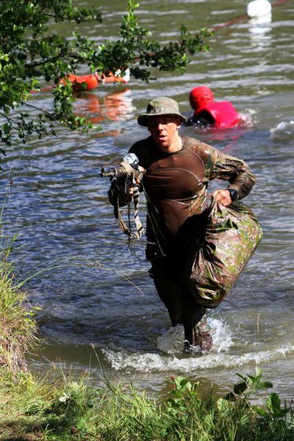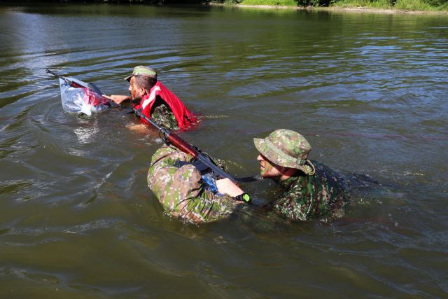 Jednou z posledných úloh, ktorá ich čakala bolo prekonanie vodnej prekážky Ontário. Po presune v lesnom teréne podhoria Malej Fatry neďaleko posádkového cvičiska Sučany zaujali kruhovú obranu. Následne príslušníci prieskumnej čaty pod vedením jej veliaceho poddôstojníka a zastupujúceho veliteľa čaty rotmajstra Pavla Korčeka urobili prieskum vodnej prekážky, zabezpečili oba jej brehy. Potom už cez vodnú prekážku prechádzali príslušníci mínometnej a protitankovej čaty. Všetci ju prekonávali plávaním v uniformách a v kanadách so zbraňou a vrecom, v ktorom mali náhradnú rovnošatu a obutie. Najmä pre tých, ktorí nie sú zdatnými plavcami to nebolo jednoduché, lebo plávali jednou rukou a museli udržiavať zbraň pripravenú k prípadnej obrane. Aj preto niektorí využili možnosť, obliekli si vesty a pomáhali si občasným pridržiavaním sa o lano, ktoré bolo natiahnuté cez vodnú prekážku. Nakoniec však všetci úspešne zvládli úlohu a zdolali vyše 60 metrov vodnej plochy. Celú akciu zaisťovali príslušníci Hasičského a záchranného zboru Martin pod vedením nadporučíka Miroslava Zimeča. „S martinským vojenským útvarom takto spolupracujeme už dlhodobejšie. Cez prekážku sme natiahli zaistené lano s bójkami, dvaja hasiči v neoprénoch sprevádzali plávajúcich vojakov, ďalší ich zaisťovali na člne. Takáto akcia je výhodná aj pre našich hasičov, ktorí si precvičia svoje zručnosti a ukazuje na veľmi dobrú spoluprácu medzi rezortmi obrany a vnútra,“ spokojne konštatuje nadporučík Zimeč.